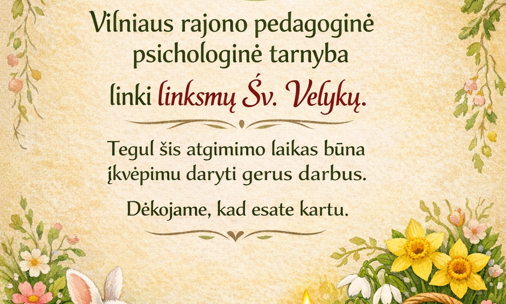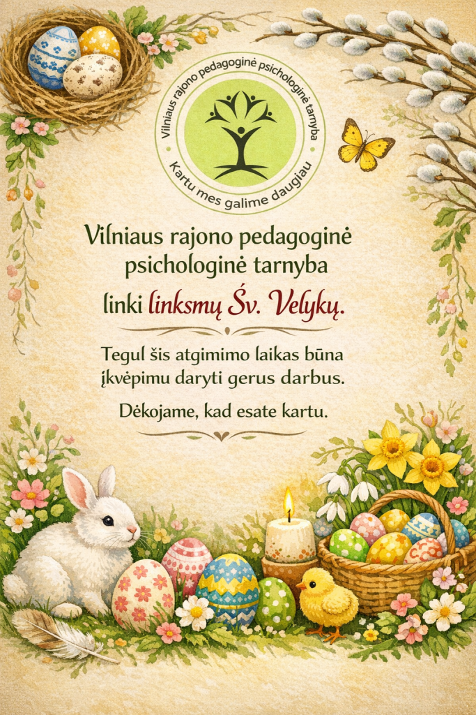 Vilniaus rajono pedagoginė psichologinė tarnyba linki linksmų Šv. Velykų